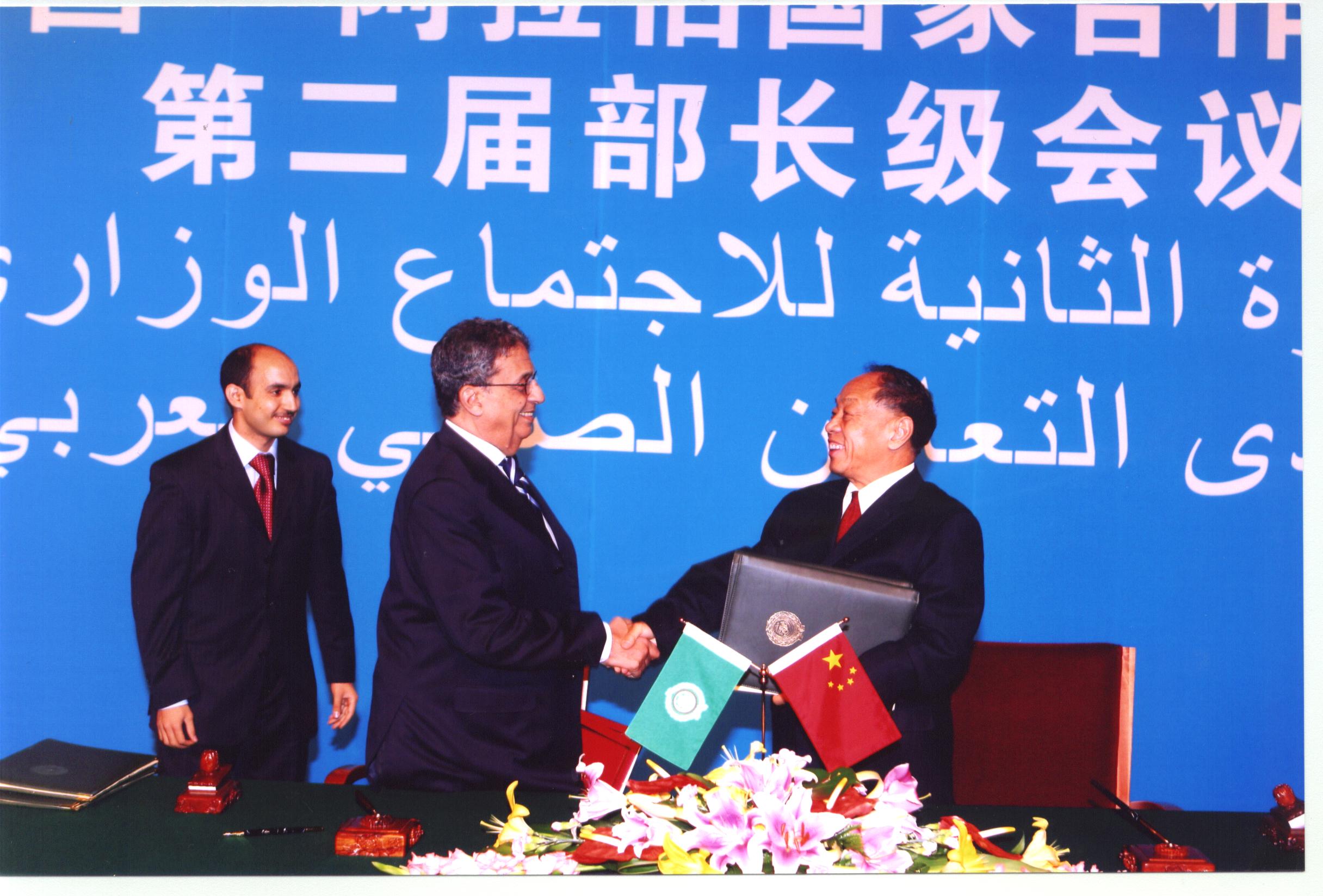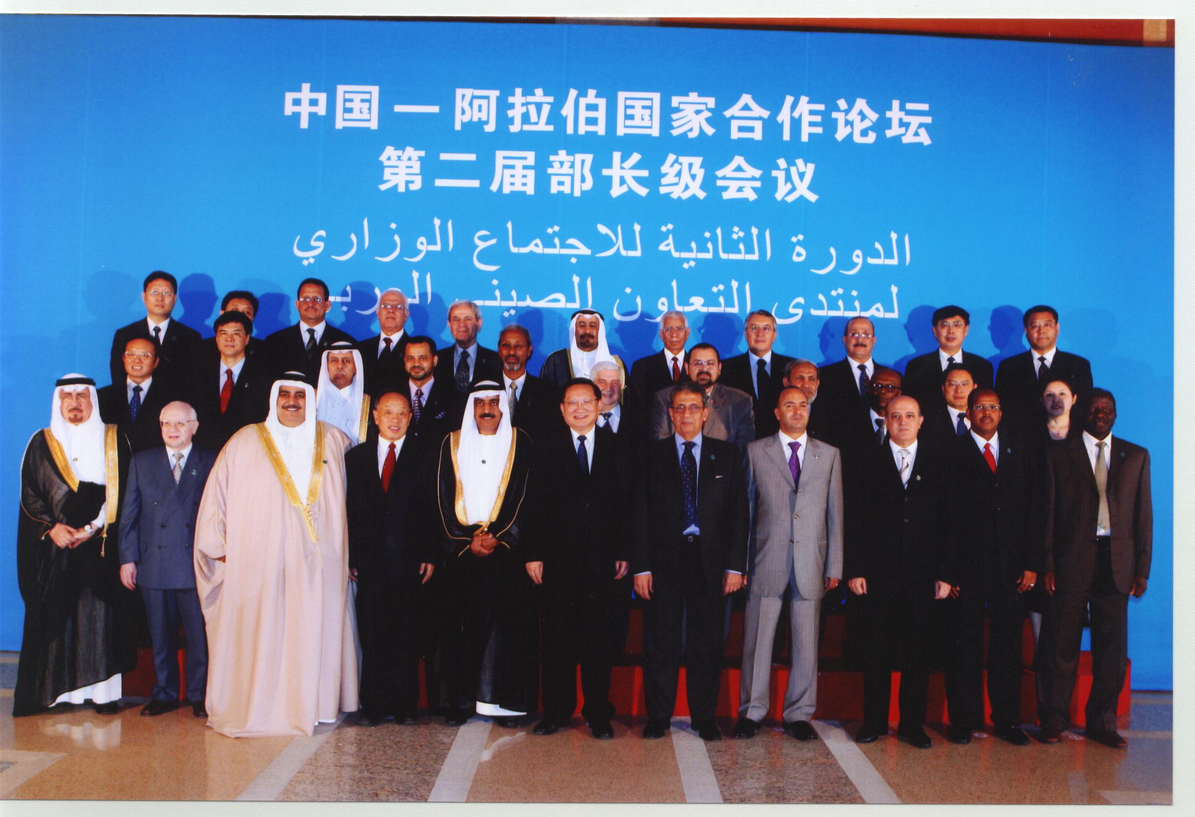 唐家璇国务委员出席开幕式并发表,李肇星外长和阿盟外长理事会轮值主席、阿联酋外交事务国务部长穆罕默德、阿盟秘书长穆萨共同主持会议。李肇星和穆罕默德分别代表中、阿方作主旨发言。发改委副主任张晓强、财政部副部长李勇、商务部副部长魏建国、文化部副部长孟晓驷、对外友协会长陈昊苏、外交部部长助理何亚非、贸促会副会长张伟及其他21个阿拉伯国家的外长或外长代表参加。