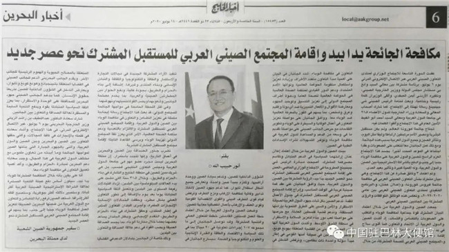 驻巴林大使安瓦尔在巴主要媒体发表署名文章《携手抗疫,打造面向新时代的中阿命运共同体》
