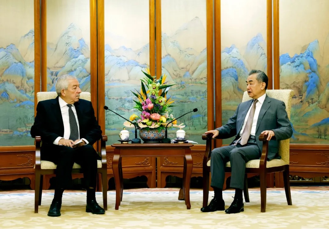 2024年7月23日,中共中央政治局委员、外交部长王毅在巴勒斯坦各派签署《北京宣言》之前,会见法塔赫副主席、代表团团长阿鲁勒。