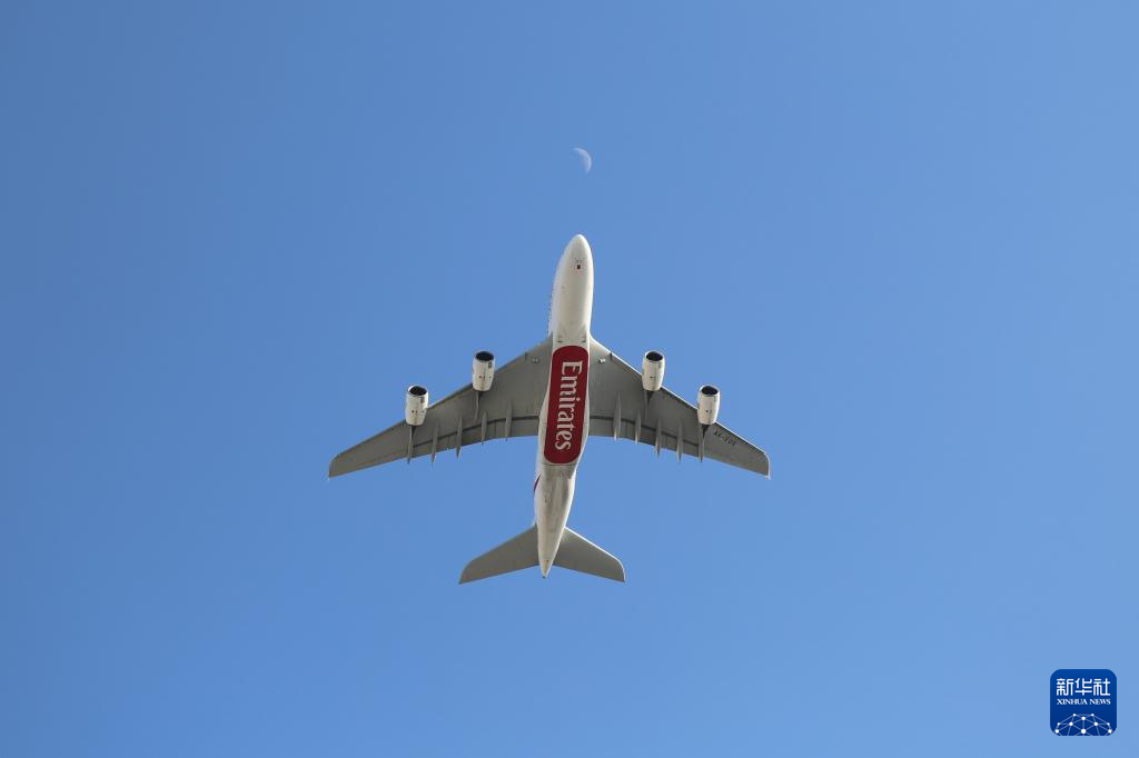 这是1月5日在阿联酋迪拜拍摄的一架阿联酋航空公司班机