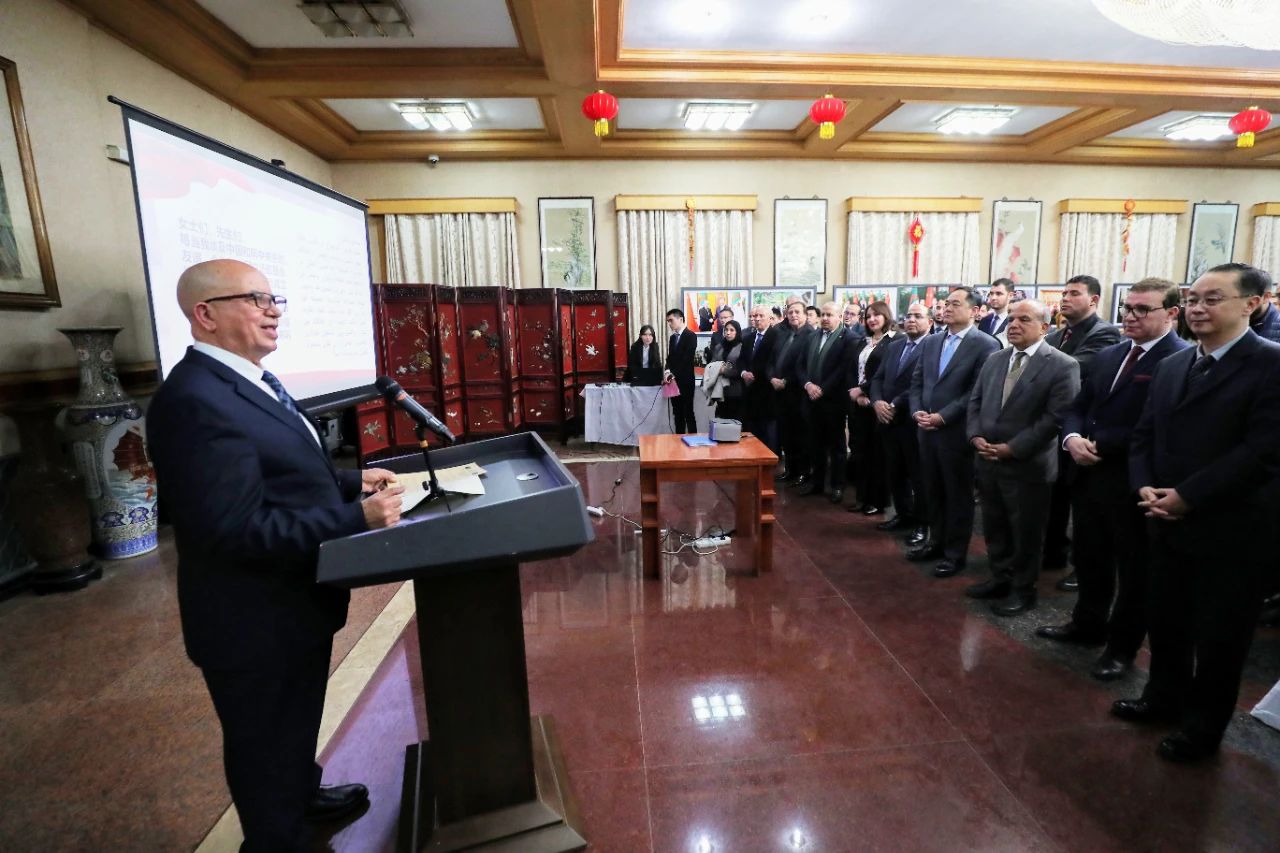 1月14日,驻阿尔及利亚使馆举办“弘扬中阿友好精神”招待会。驻阿尔及利亚大使董广利、中国人民对外友好协会杨万明会长、阿中友好协会主席德贝什分别致辞,阿政府、议会、政党、老战士、社会团体、学者、媒体等各界友好人士150余人出席。