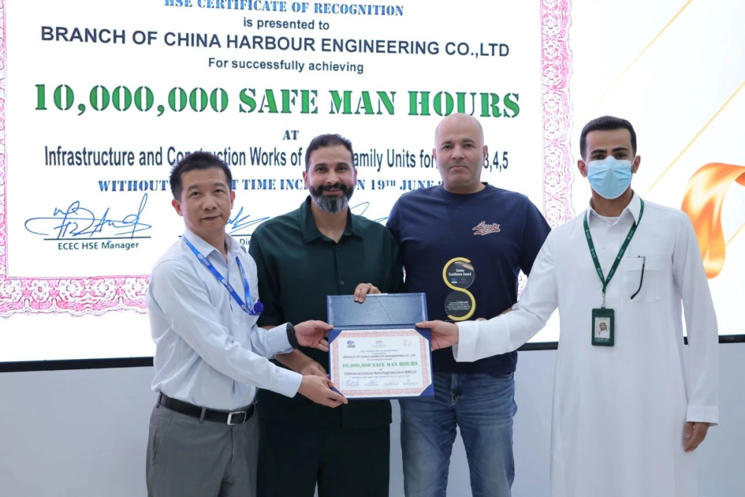 近日,由中国港湾承建的沙特利雅得塞德拉三四五期、利雅得东项目(以下称“塞德拉项目”)突破1000万安全工时,获得业主表彰认可。