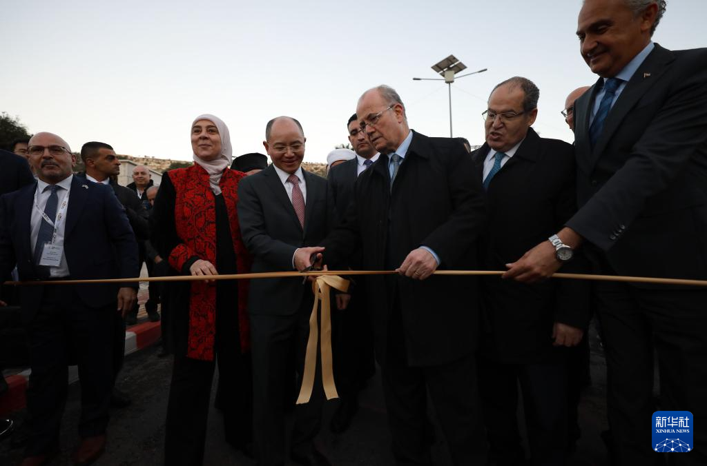 11月26日,在约旦河西岸中部城市拉姆安拉,嘉宾共同为中方援建的北京路延长项目竣工剪彩。